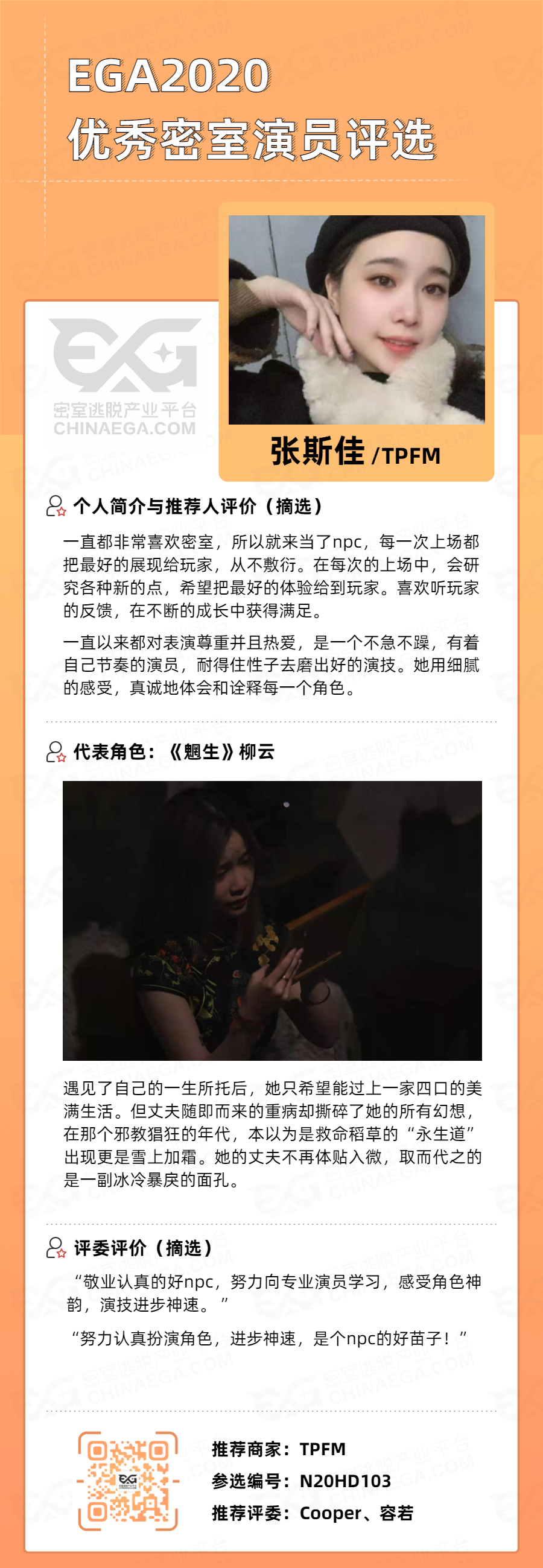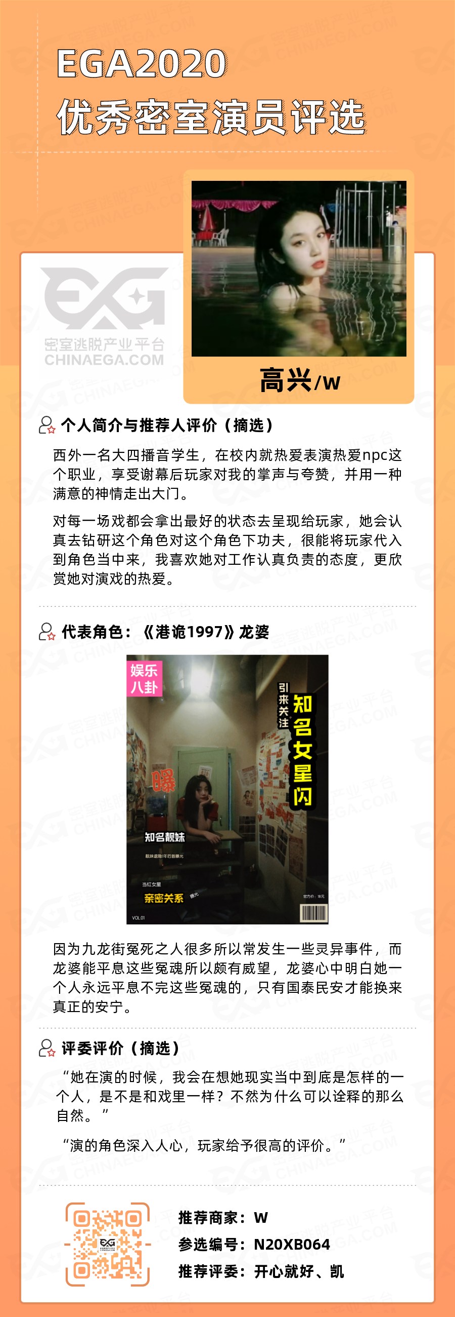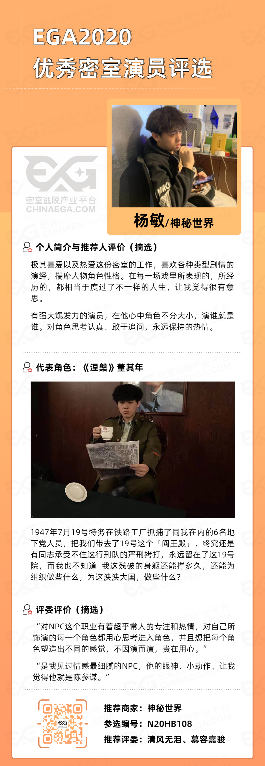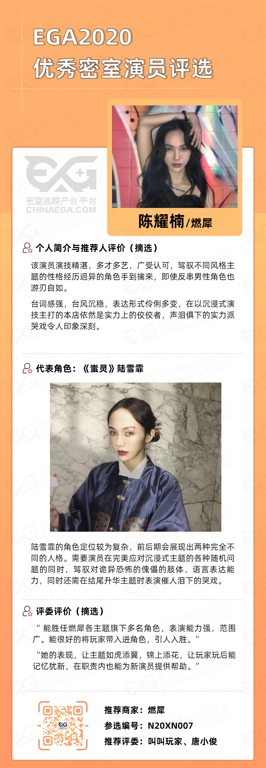 EGA2020优秀密室演员评选开始!