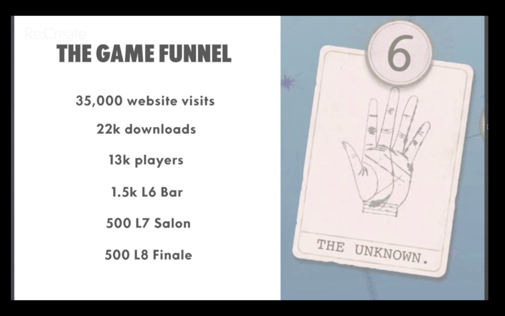 那本次的活動整體效益如何呢?遊戲的部分,創造了35,000網站瀏覽量,22,000的App下載量,13,000的活躍玩家,1,500人完成 Level 6酒吧關卡獲得調酒,500人完成 Level 7美髮沙龍關,500人抵達Level 8 結局關(本關允許攜帶1位朋友共同參與)。
