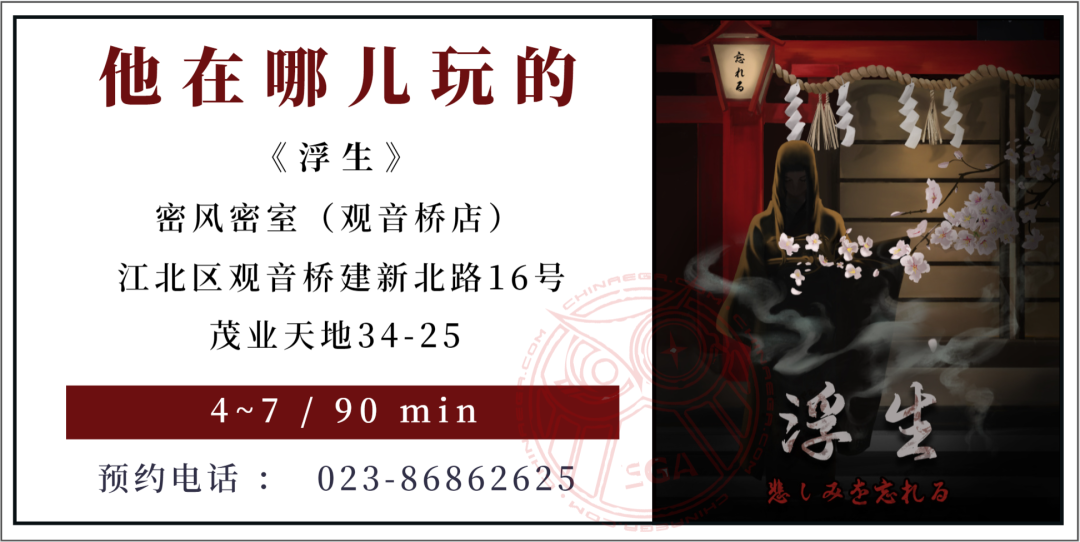 总的来说,《浮生》是一个难度适中的微恐日式主题,最难能可贵的是它的整体流畅度非常高,玩家可以高度融入故事中,游戏全程也不会让人出戏,因此特别适合刚刚接触密室的新手玩家前来体验。