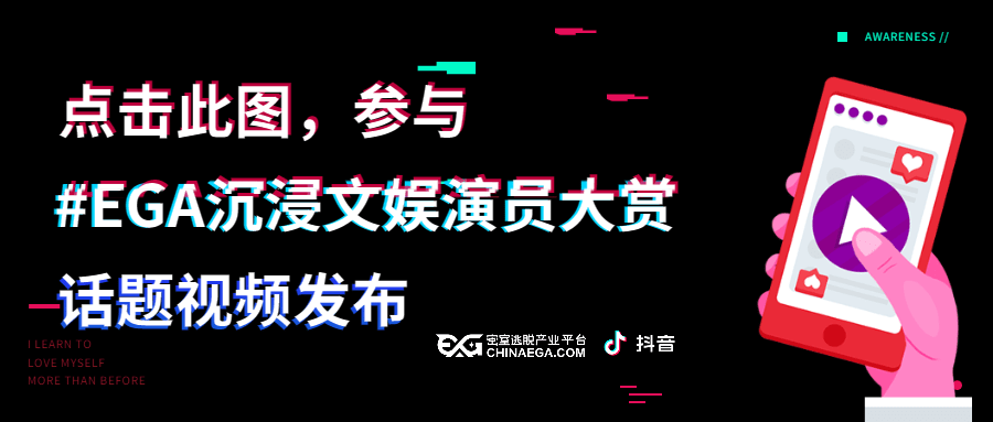 视频可选择EGA官方抖音账号(EGA密室平台)、店家抖音账号、演员个人抖音账号发布; -