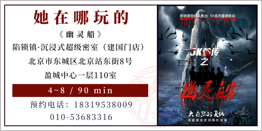 A:这个问题可能要卖个关子了,我们对于之后的IP主题延续方向已经确定好了,争取一年磨一剑,这个IP所衍生出的每一个产品我们都将力求有它的独特亮点。《5K旅店》是将剧本杀和密室结合,特点是烧脑和推理。《5K前传—幽灵船》的特点是调制一种“骚恐”口味,不做传统口味的恐怖主题。接下来的任务就是陆续把我们的心血更好的展现给大家,也希望大家能更多的关注我们陷锁的《5k系列》。另外我们也会推出其他有意思的主题,不光是《5k系列》哟~