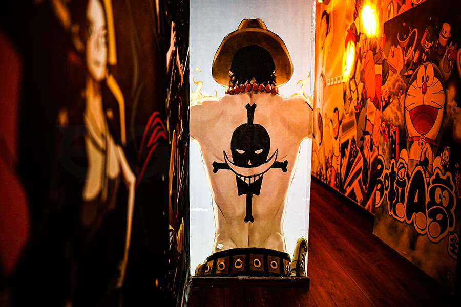 A:其实主要的就是里面的机关和道具,里面机关许多都是订制的,包括里面大型机器人,全息投影,里面的小视频制作等。在一些小道具上面,就是能买好的,绝对不买次的,能贴壁布就绝对不贴壁纸,就是尽量让玩家感觉的真实一点,玩的体验感更好一些。