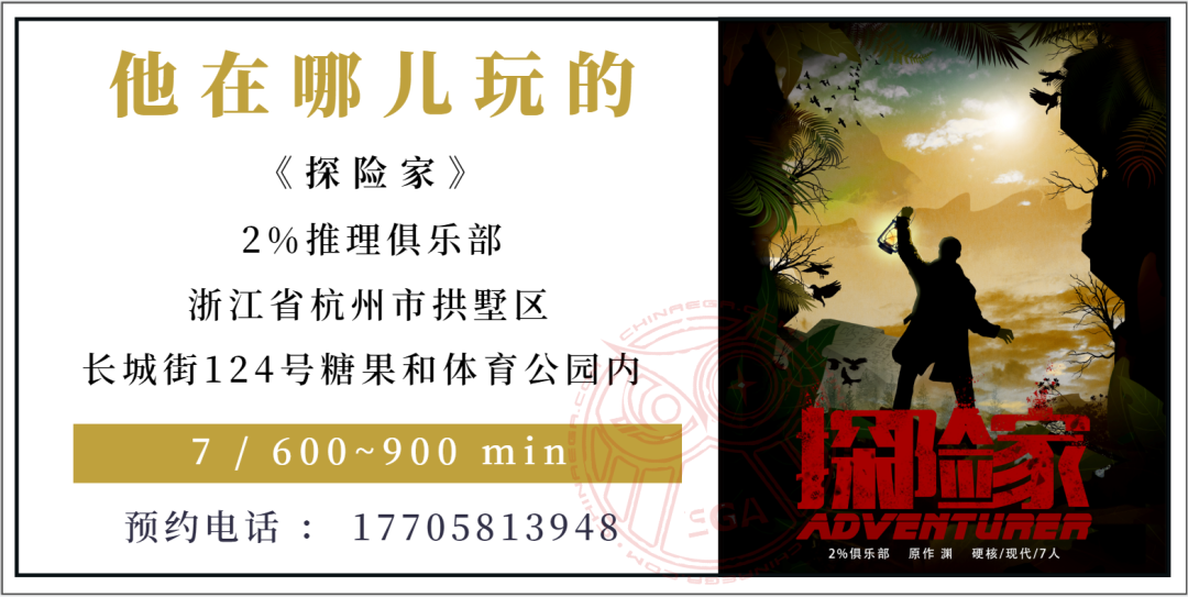 A: 实验。一个抱有希望的实验。我想看看剧本杀的边界在哪儿?又或者说,之后会成为哪种样子。所以我在《探险家》中增加了许多元素。