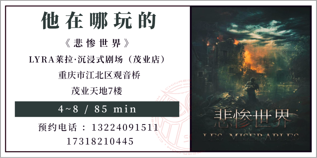 而随着不少新老密室品牌陆续入驻此地,今年才开业的“LYRA莱拉”携旗下首部作品《悲惨世界》以鲜明的风格为“重麻重辣”的山城增添了一抹别样色彩。那么今天,我们就来聊聊这款独特的沉浸互动剧。