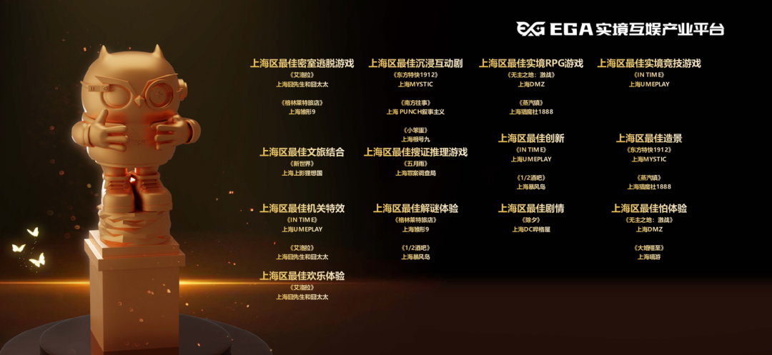 2022-2023年度,EGA上海区获奖的实境游戏作品及出品方如下——