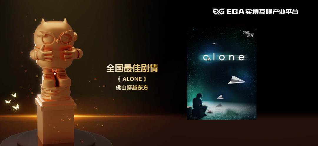 佛山穿越东方出品的《ALONE》与南京M-CITY出品的《神秘来电》荣获EGA2022-2023年度全国最佳剧情。