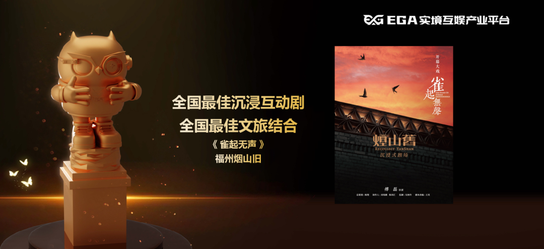 福州烟山旧出品的《雀起无声》荣获EGA2022-2023年度全国最佳沉浸互动剧、全国最佳文旅结合