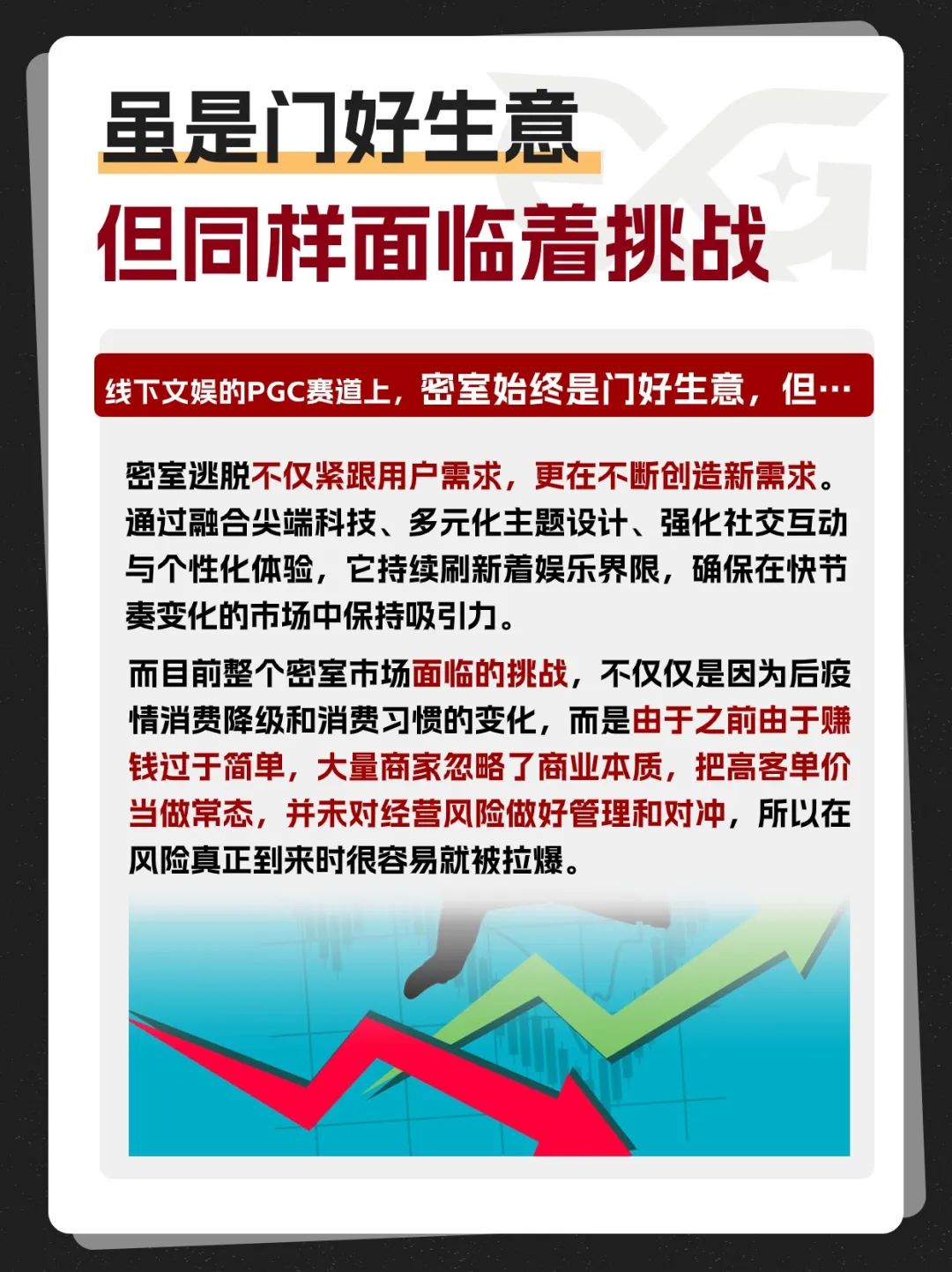 密室逃脱在当前线下文娱的PGC(专业生产内容)赛道上,确实保持着其作为优质产品的地位;其独特性在于提供了无法完全被线上体验所替代的实体互动与沉浸感,满足了人们对于面对面社交、探索解压的渴望。