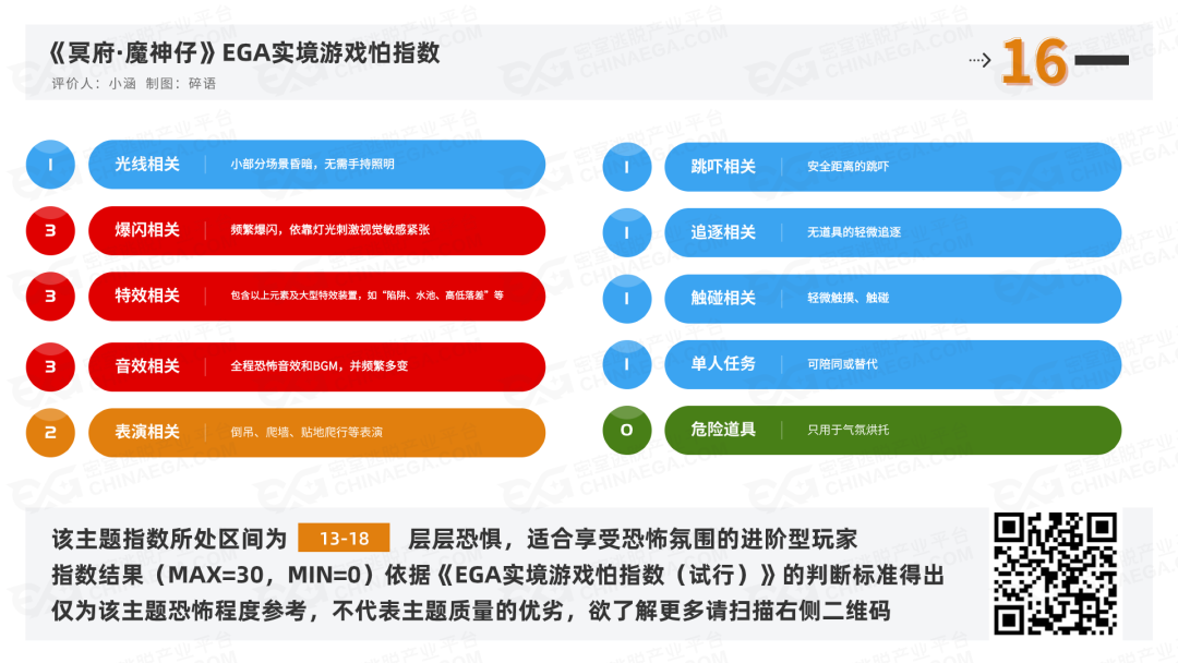 玩家身份上,《冥府·魔神仔》仅两名角色存在强制单线,其他身份牌均有绑定关系可相互陪同,加之单线部分虽路径复杂多变,但行进路上均有灯光提示,导致主题本身对胆子较小的玩家同样友好,奶坦兼顾。