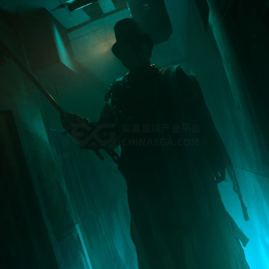 中间的【尸人】摇柜子声光电演绎,玩家分两组躲于两个柜子之中,【尸人】也会立于中间或两侧同时对两个柜子进行多角度体感互动。两组玩家能够从不同高度看到彼此,最后【尸人】还会对其中A组所在柜子进行一个特殊互动,打破了传统的安全边界,效果很好