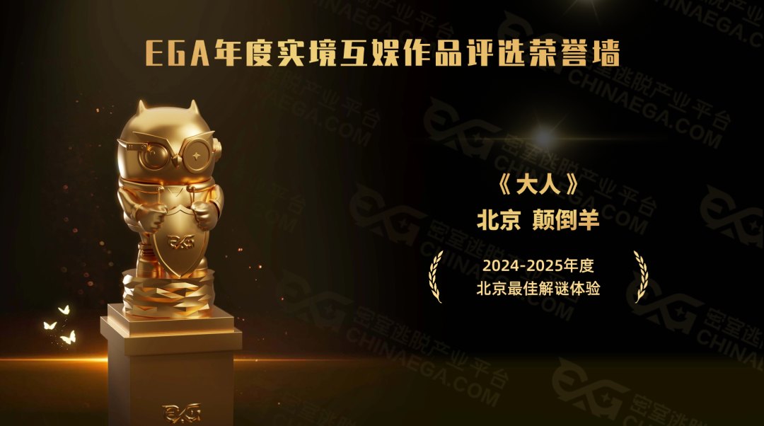 测评 | 北京《大人》- 童年的子弹正中眉心 作者 | 去洗 编辑 | 碎语 揉揉惺忪的睡眼,你突然发现自己掉进了一个玩具盒中。这里有童年的玩偶、没写完的暑假作业、游戏机、电视上播放的是我爱的动画片。原来我是穿越回了童年熟悉的地方,这就是北京颠倒羊2025年新作《大人》! 《大人》以第一视角为开端,被梦境中儿童玩具带领走入一场魔幻而又回忆满满的童真世界。等比例放大的玩偶和变成巨人的猫咪,时刻提醒玩家的穿越者身份。而当你回到了记忆中的童年,小时候的一切似乎也都在告诉你——我们已经长大了,长成了不再需要玩具,不再看动画片的“大人”。 01 童真谜题,趣味互动 《大人》这主题中有诸多谜题都是基于童年元素所设计,包括动手制作的迷宫,超大号的打火机芯,又或者是采用鸡兔同笼的数学应用题。每一个可爱道具机关都是和童年息息相关的谜题。让玩家一秒回到孩童时代。值得一提的是设计师利用小巧思将这些童年符号和谜题结合的息息相关,好玩互动。 主题谜题种类丰富多样,除了烧脑解谜外还有消耗体力的运动型谜题和观察类型的谜题,解谜体验不单一。需要队友配合才可一一化解,最令人印象深刻的则是“你来比划我来猜”小游戏,玩家需要一人关进玻璃房表演所示卡通人物特征,外面的玩家选择猜测正确的一个。这个谜题的趣味性得到提升。让队友骤然升温,欢乐的解密体验将氛围拉满。 02 虚实结合,巧用空间 虚拟空间结合现实的解密手法虽然不是首创,但是《大人》的设计更为另类和巧思。通过远程操控进行解密,回溯童年卧室来进行时空切换。主题最后回归到玩具屋沙盘,等比例缩小的屋子结合实体遥相呼应,遥控童年的玩具坦克发射到未来一颗子弹。 玩家在游戏里则像是缩小到玩具盒子里的小矮人,所有的谜题和道具都放大了一般,空间谜题运用也需要用反向思维,谜题好玩程度升级。例如在保险密码锁里面解密的数字,通过超大号的扳手和螺丝刀解锁,再用逆向思维推理谜题数字,这个设计令人拍手叫绝! 03 成长回顾 令人深思 在欢乐解密和回忆童年之余,《大人》最后捡到了那一枚从童年发射来的子弹,直击心灵。主题内展现的情节,讲述了我们小时候无拘无束的日子,还有一起长大的玩伴和卡通人物陪伴。 然而主题的结束时分,隐匿在童年记忆里的他们仿佛在问现在的我们,大人的世界还好吗?过得还开心吗?你是否长成了小时候你想成为的大人?灯光一亮,面前的镜子照射着我们自己,镜子里就是长大了的我们,我们已经成为了那个“大人”。 《大人》欢乐可爱的外表下内核却是一个有些悲伤色彩的回忆杀主题,温馨回忆童年的梦境醒来,我们要面对的是当下已经长大成人的自己,面对没有了无拘无束生活的大人的世界。 类似主题让我想到《拔剑吧!勇士大人》通过欢乐的卡通人物故事打败现实生活中的“怪物”让我们更坚强地成长。《大人》则是轻轻的安慰。加油呀,即使长大了也不要忘记童年纯真的自己,要努力做一个独一无二的“大人”! 04 写在最后 《大人》这个主题用轻松的游戏取代烧脑的解密,不仅局限于谜题本身,更是结合了童年的回忆片段。此外这个主题结局虽然有些感人,但并未存在强行上升和“按头哭”的设计。只是留给玩家一个想象空间。主题全程温馨,老少咸宜,无论是亲子向的玩家,还是解谜密室的老玩家都可以在这个主题发现完全不一样的亮点。 随着密室类型的多样性发展与玩家客群的壮大,适配度更高的密室种类逐渐会成为主流。烧脑解密和儿童主题往往是两个极端,而《大人》刚刚好的不会太难也不会太幼稚的适配度,让这个主题在开业以来玩家好评度颇高。 另外据了解除了来尝鲜的“机械密室老饕”之外,该作大部分是周边居住的家庭玩家,因此父母大可在带娃来体验的同时,在《大人》里回忆自己的童年。 排版 | 碎语 素材 | 颠倒羊密室 本文谢绝未经EGA授权的转载摘编,如有需要请私信联络 – 文章仅为作者个人观点,EGA带您逛遍实境互娱 – 上一页 文章 花上万谈100次“假恋爱”,你还觉得这只是擦边? 下一页 文章 测评 | 珠海《鬼影戏》- 曲终魂未散,鬼影语喃喃 推荐阅读 参选测评 | 上海《圣米歇尔》- 密室里的“元宇宙”体验chinaega2022年8月22日主题测评 参选测评 | 成都《等一朵花开》- 大山里的花朵,终会绽放chinaega2021年3月17日主题测评 参选测评 | 广州《失乐园》- 小心黑暗里的恶魔chinaega2022年3月24日主题测评 参选测评 | 北京《直播》- 取悦观众还是直映内心?chinaega2021年1月30日主题测评 首发 | 老重庆的禁忌街道-长古世家《松石街33号》评测于老六2018年8月29日主题测评 密室吹哨人 | “密逃大厦”曝光“芒果TV”?chinaega2020年9月20日主题测评