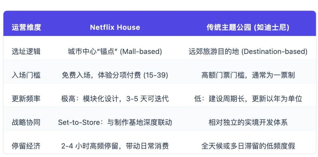 摒弃“硬装思维”,建立“软件式迭代”能力:国内很多实景项目,装修完就是为了“等死”。学学 Netflix 的模块化设计,把物理空间做成可拆卸的,3-5 天就能换个主题。内容的热度转瞬即逝,你的空间必须跟上算法的速度,而不是停留在传统地产的折旧率上。