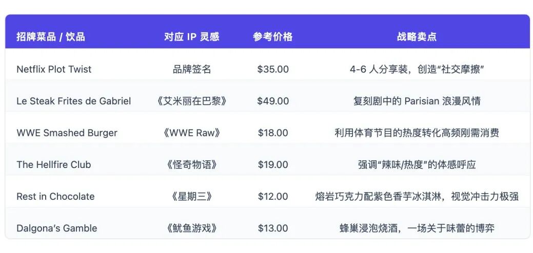 Netflix Bites最值得国内从业者借鉴的是其“分享经济”逻辑:比如招牌的 “Netflix Plot Twist”——这是一个售价 35 美元、足以为 4-6 人提供服务的巨大巴伐利亚软饼干。这种产品设计强行创造了社交互动,让餐饮区成了粉丝社群的“篝火”。
