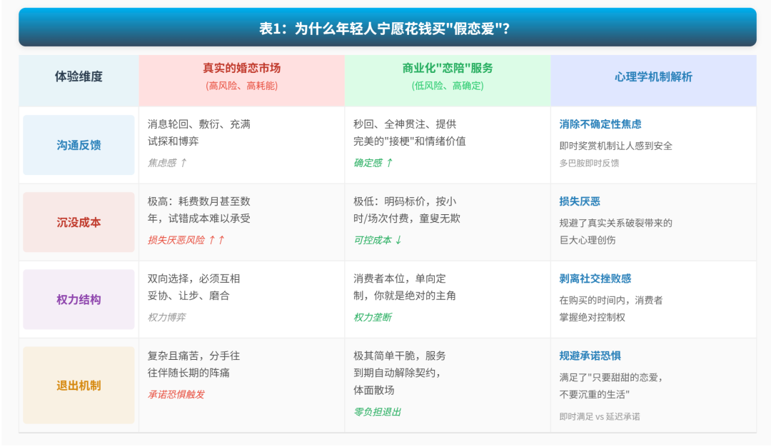 而商业情感服务的精妙(或者说狡猾)之处在于:它用金钱契约,直接替代了“承诺”
