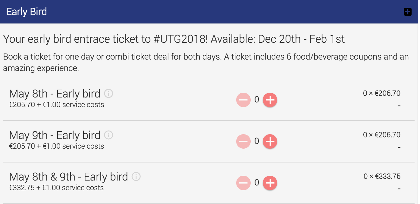 目前早鳥票的票價是一天 €206 左右,只開放至2月1日,有興趣的人可以盡快購買!