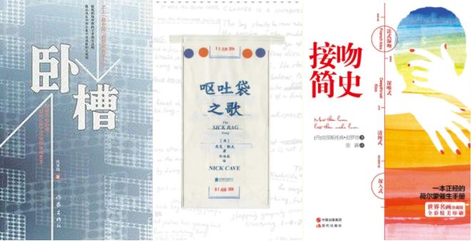更有近几年出版的新生代奇书如书名惊天动地的奇书《卧槽》;外部装帧就很有特色的《呕吐袋之歌》;让人浮想联翩的《接吻简史》等等……