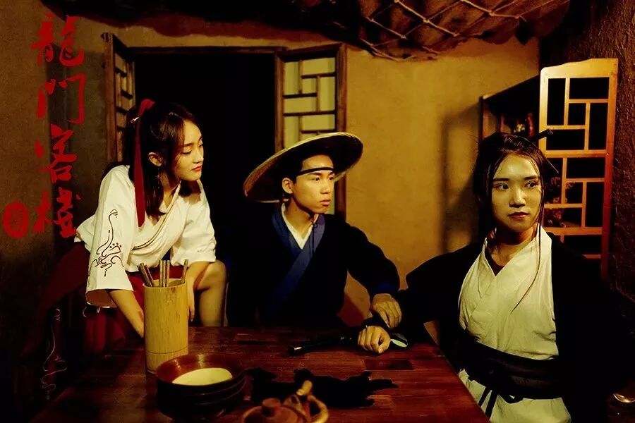 再说场景,《新龙门客栈》占地面积不算太大,但特别有味道。特意做旧的建筑配上大漠风沙,特别有孤寂、苍凉的味道。