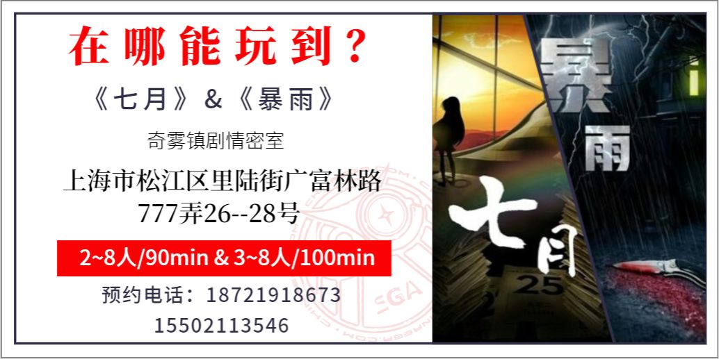 其中《七月》的世界观设定更是具有突破性,有种初见“盗梦空间”般的震撼和冲击。纵向比较,之前仅凭剧情就能带给荆棘同样感觉的魔都密室,也就魔方的《暗杀》与MC的《维多的秘密》而已。