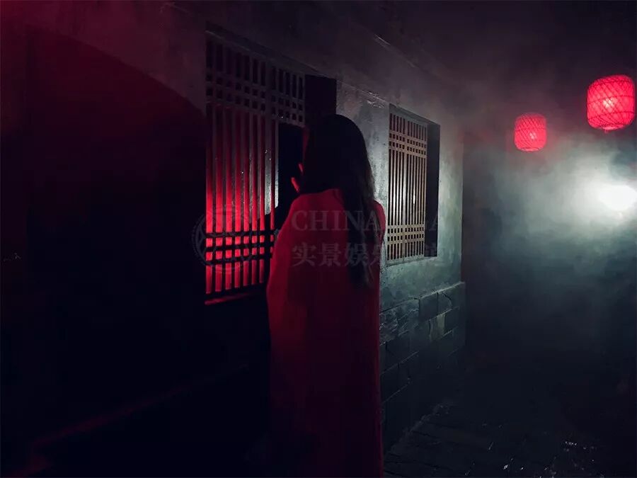 可以说与一些小而粗糙的恐怖密室不同,《烟雨楼》以黑暗为幕,在百来平的空间内描绘了栩栩如生的雨中水乡,每个场景的视觉呈现,都达到了电影级水准。