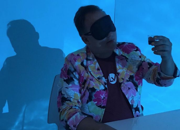 “Theatre in the Dark”还有关于触摸的体验,比如把手放在别人的肩膀上,然后你还可以感受到桌子和面料的触感,还可以尝到和闻到不同的味道。