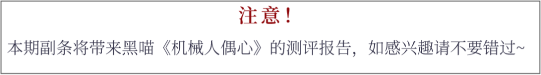 总体来说,该作的最大亮点就是融入了独特的游戏思维——“密室+剧本杀+狼人杀”的“三合一”玩法拓展了游戏形式,丰富的版本则能更好满足玩家的不同需求。而回顾作品本身,《机械人偶心》也正如一个会“一直更新版本的互动游戏”,在种草的同时吸引着玩家二刷、三刷乃至N刷。